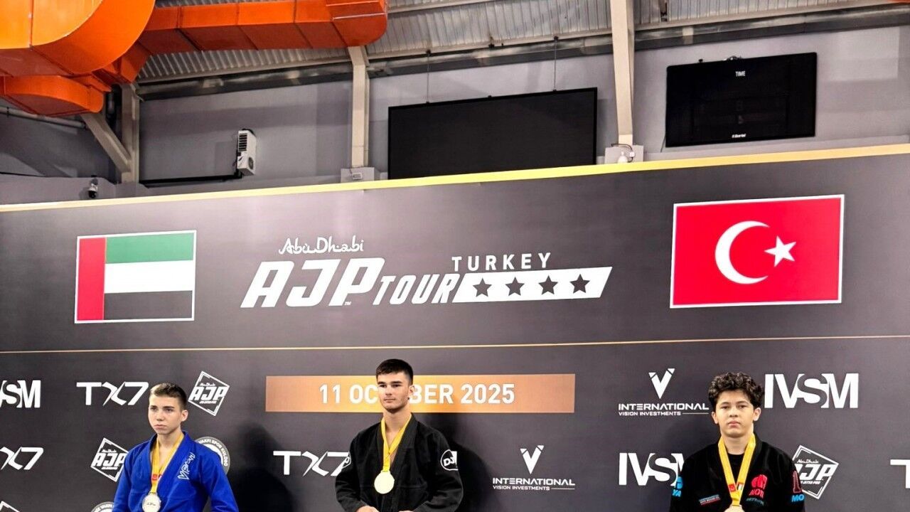 AJP Tour Turkey National Jiu-Jitsu Championship 2025’te mücadele eden 15 yaşındaki Yakın Doğu Spor Kulesi sporcusu Deniz Turan, 66 kilo genç erkekler kimonulu (Gi) kategorisinde altın madalya, kimonusuz (No-Gi) kategoride ise gümüş madalya kazandı.
