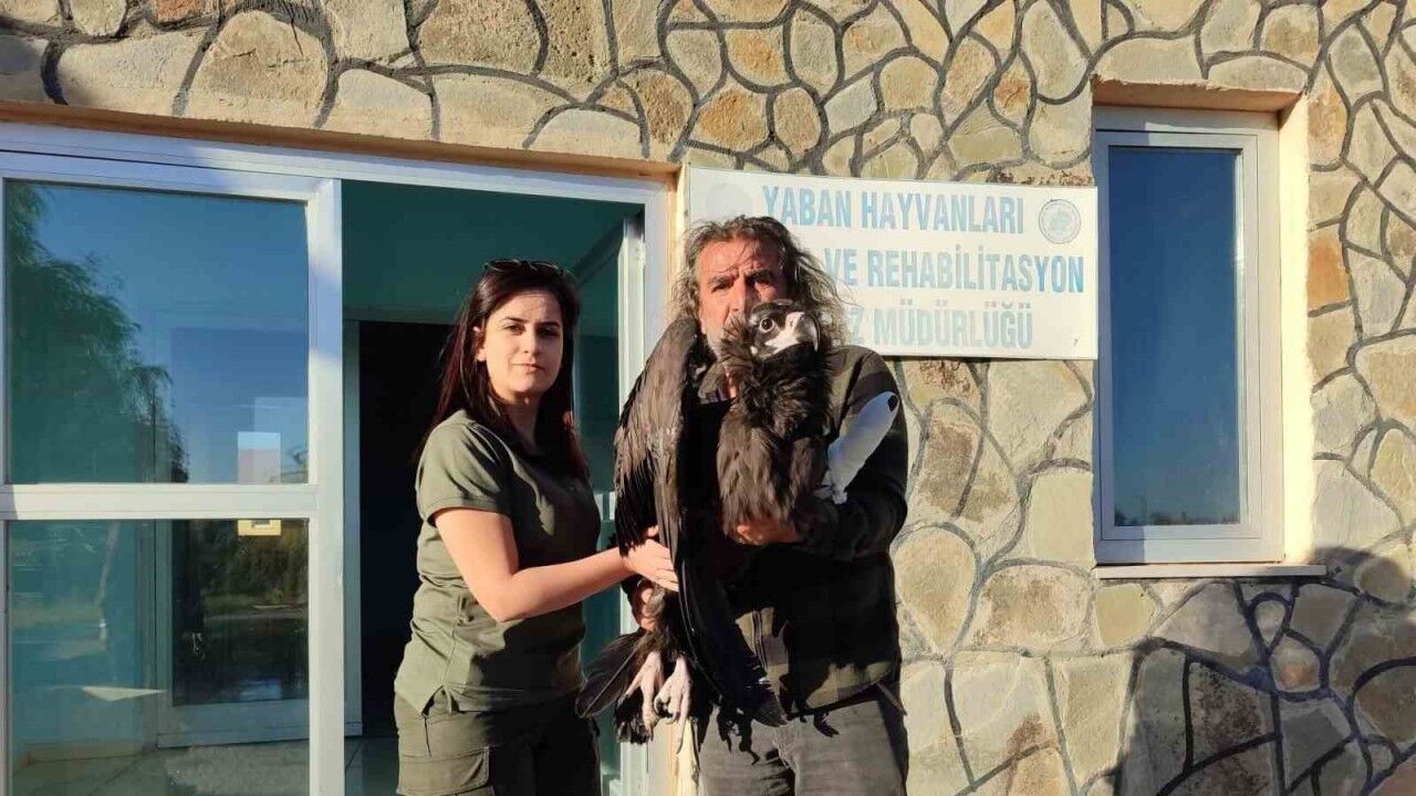 Bitlis’te jandarma personeli tarafından bitkin halde bulunan kara akbaba, tedavisi yapılmak üzere yetkililere teslim edildi.