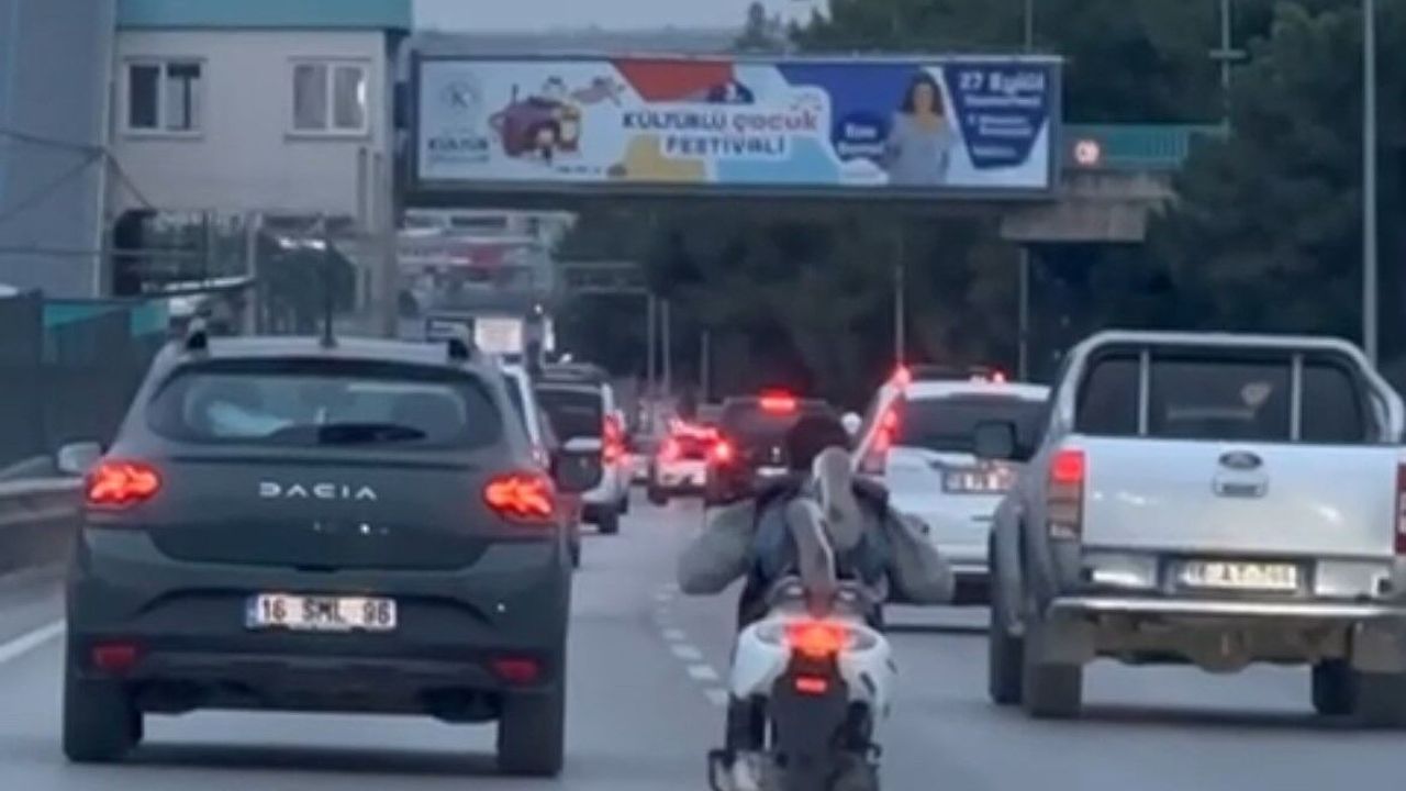 Olay, öğle saatlerinde Nilüfer ilçesi İzmir Yolu Caddesi üzerinde meydana geldi. Edinilen bilgiye göre, plakasız bir motosiklet sürücüsü, yoğun trafikte motorunun üzerine yatarak araçların arasından hızla geçti. Sürücünün bu tehlikeli hareketleri yürekleri ağza getirdi.