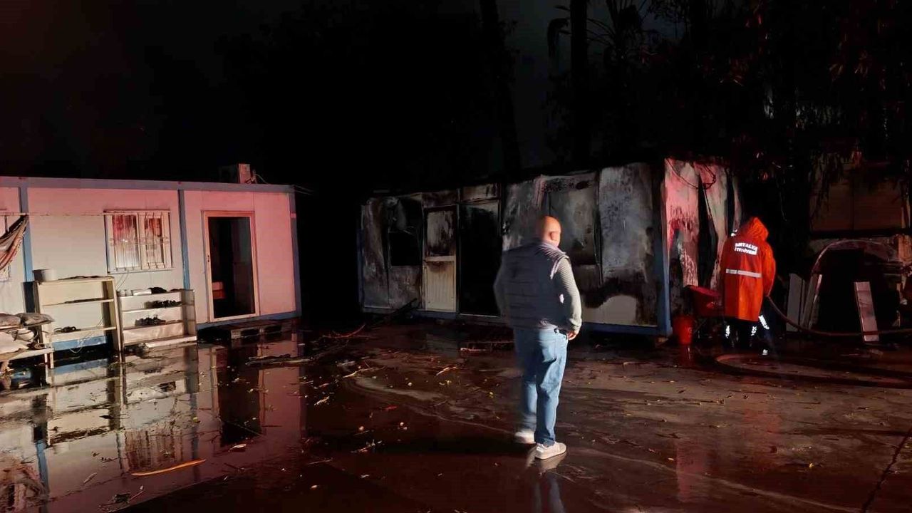 Antalya'nın Manavgat ilçesinde yıldırım düşmesi sonucu palmiyelerin tutuşmasıyla çıkan yangın, dinlenme tesisi personelinin kaldığı konteynera sıçradı. Alevler, itfaiye ekiplerinin müdahalesiyle söndürüldü.