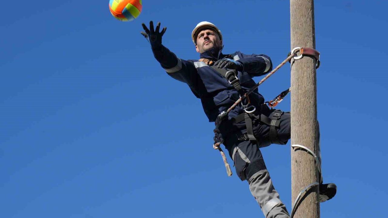 Doğu Anadolu Bölgesi'nde elektrik dağıtım hizmeti veren Aras EDAŞ, saha çalışanlarını zorlu iklim ve coğrafi şartlarına hazırlıyor. Personel sabah antrenmanlarında koşuyor, direk taşıyor ve elektrik direkleri üzerinde voleybol oynuyor.